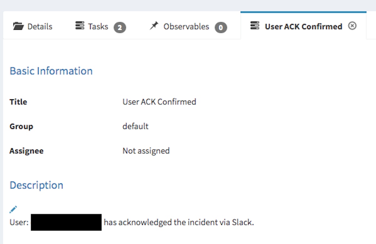 TheHive automated case update to show the user confirmed/acknowledge