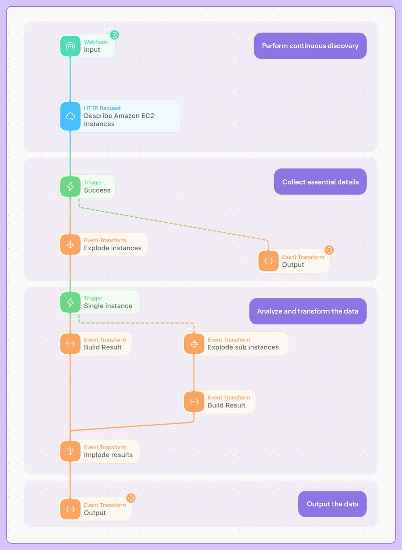 To demonstrate the four fundamental steps in action, let’s examine an automated workflow for discovering and tracking EC2 instances in AWS: