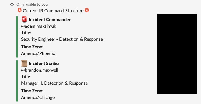 Some commands are limited to a subset of engineers on the incident response (IR) team. We’ll cover some of the features of this implementation throughout this blog post.