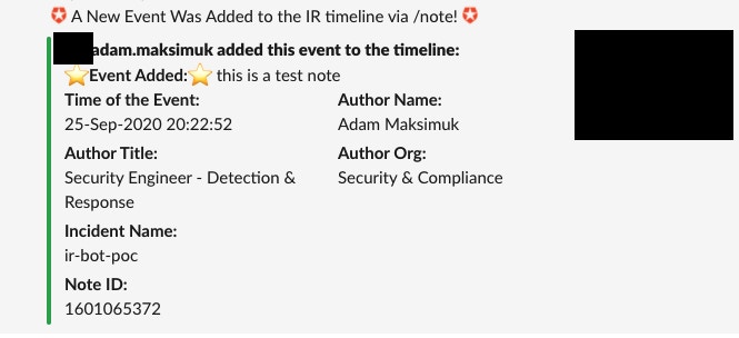 These notes are reported to the IR team and not the incident channel. This is done to keep activity to the channel limited to important discussions. This data is also updated on the Jira board.