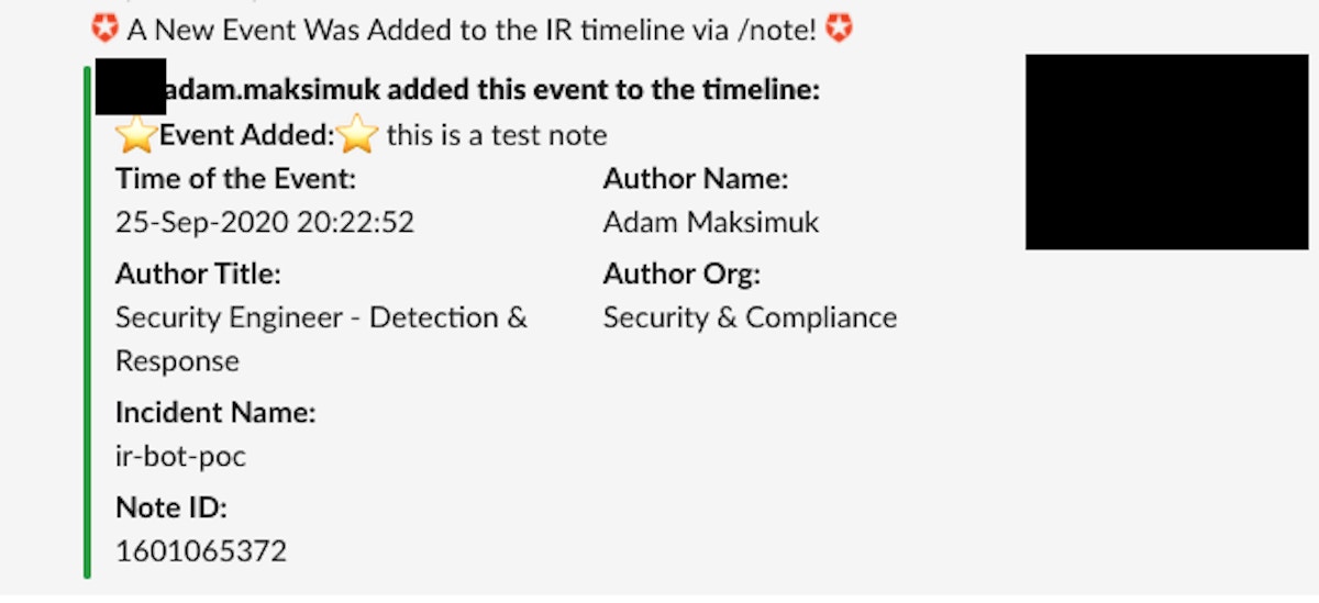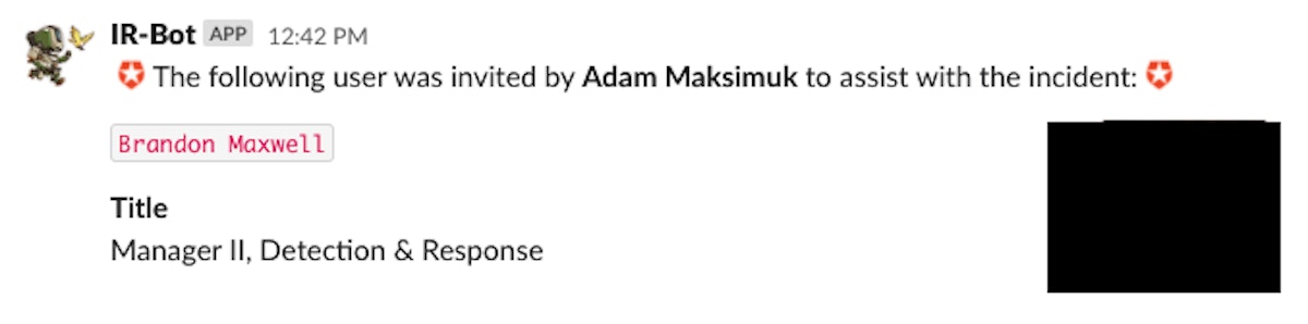 All engineers in our IR team are then invited by the bot to the channel
