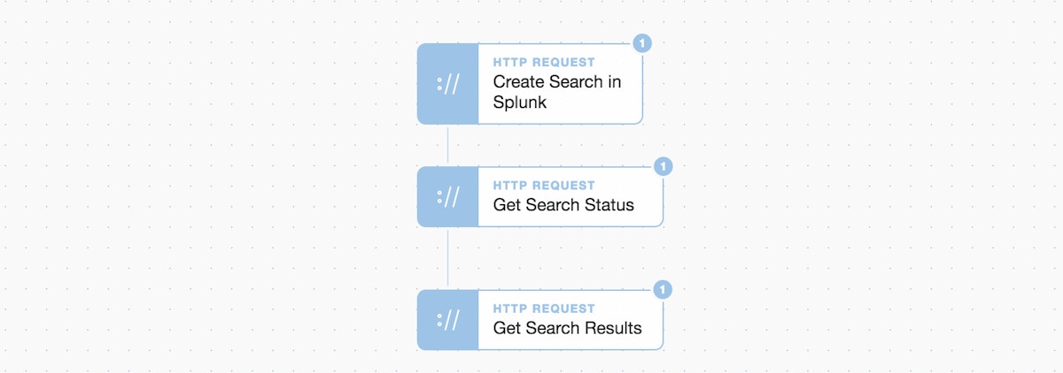 We construct a simple Story that also includes a ‘polling’ retry loop (for the search status), one that also handles any errors or problem conditions that are encountered. This logic can grow and evolve over time. It can also take advantage of a huge range of vendor or other platform endpoints to increase the automation’s value, i.e., not just Splunk functionality but a whole range of templated integrations (or you can make your own)!