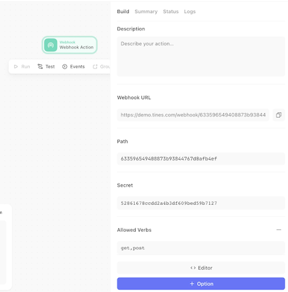 To do this in Tines, first, create a new Story, then drag a Webhook Action onto the Storyboard. This Action will receive new email notifications directly from o365. We then add a dynamic response of the Validation Token. The below Webhook Action configuration will satisfy each of the above requirements: