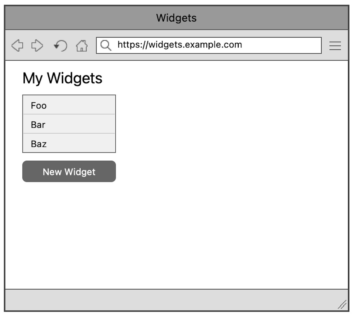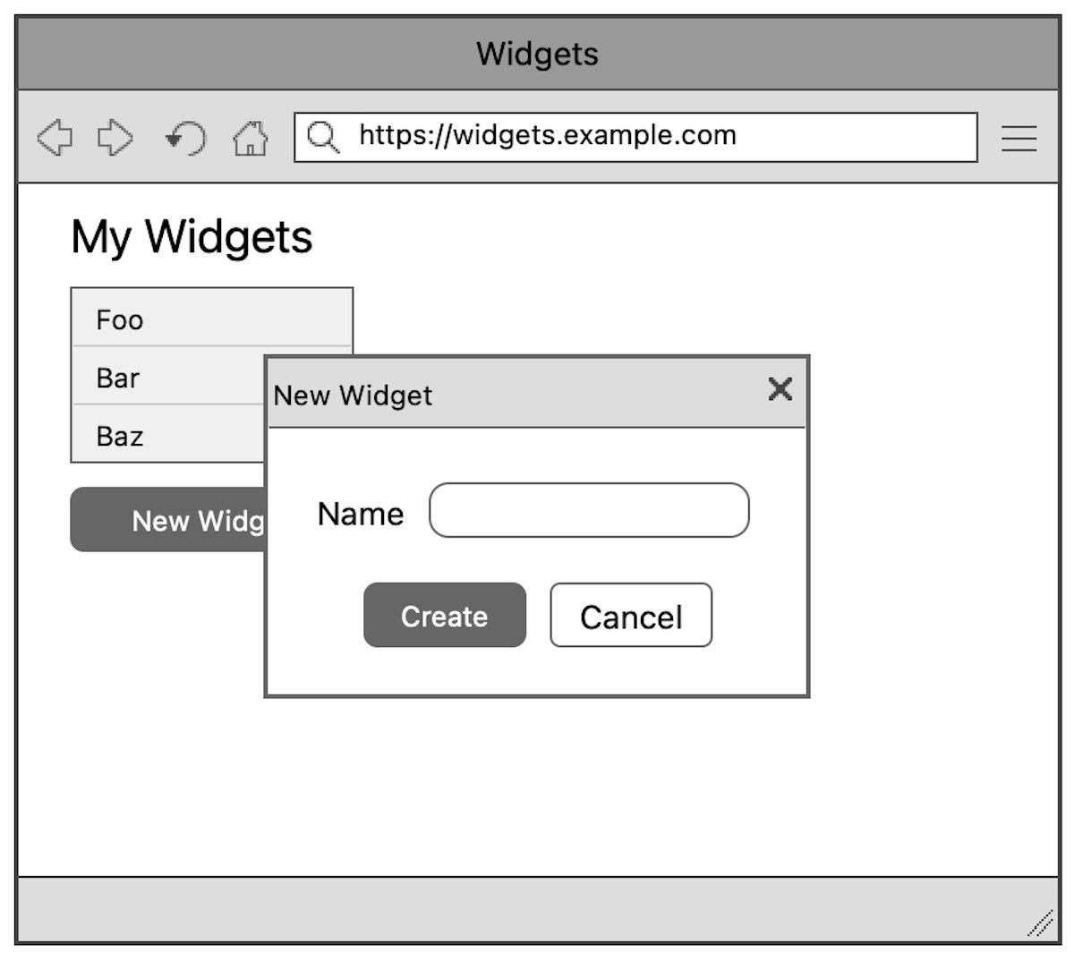 Imagine you're on a team, working on the CRUD user interface of a groundbreaking new web app for managing widgets. Here's what you have so far: