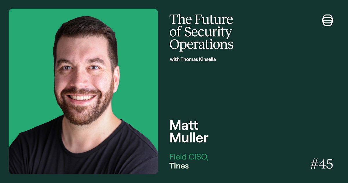 In this week’s episode of The Future of Security Operations podcast, I'm joined by Matt Muller, Field CISO here at Tines. With over a decade of experience at companies like Material Security, Coinbase, and Inflection, Matt’s got a strong track record of scaling SecOps teams, building threat detection and mitigation programs, and driving trust and safety initiatives. His knowledge impressed the Tines team so much that we invited him to join the team as our first Field CISO.