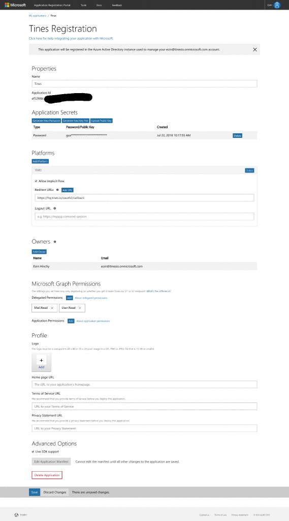 Step 1 – Getting an app ID and secret for use in Microsoft Graph