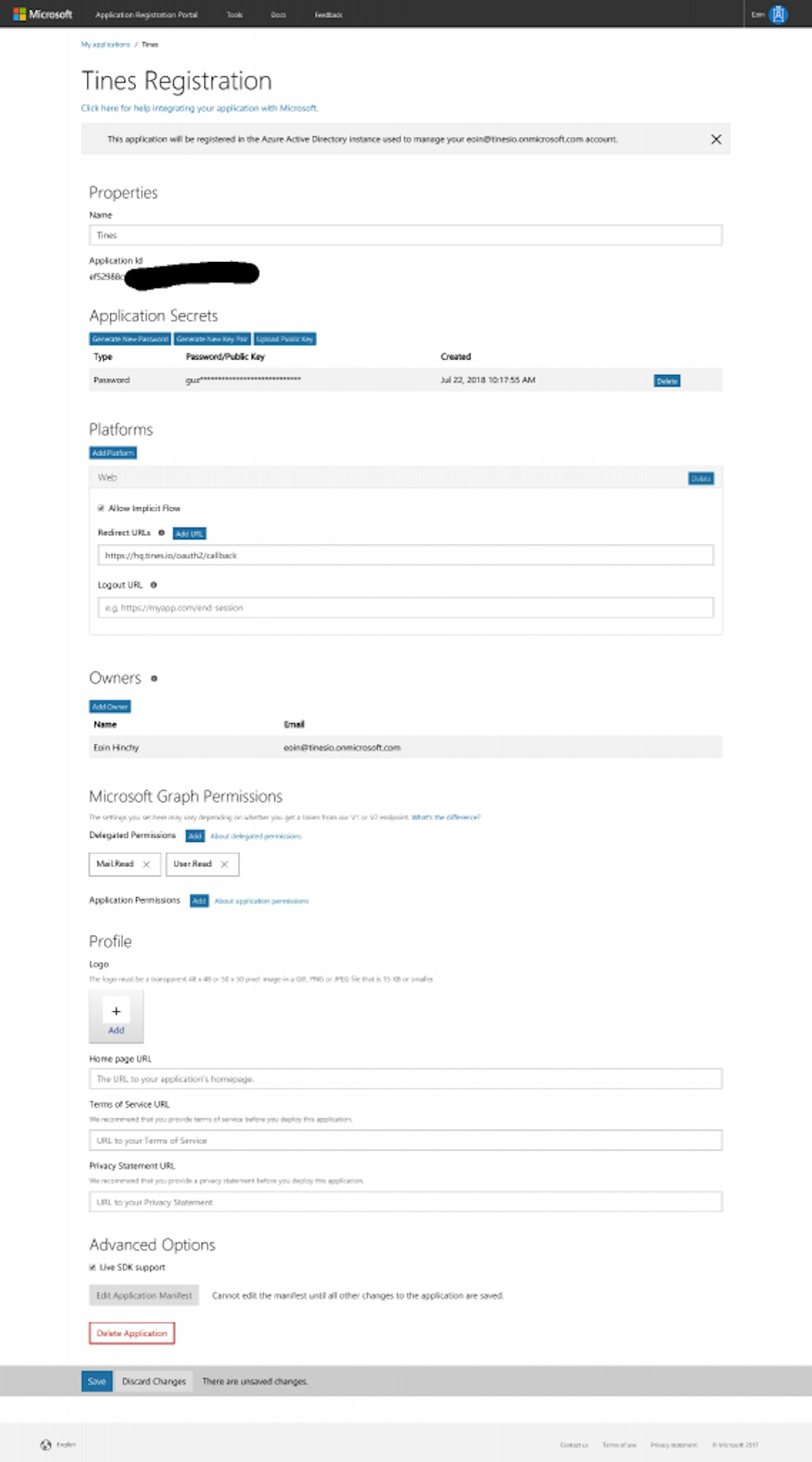 Step 1 – Getting an app ID and secret for use in Microsoft Graph