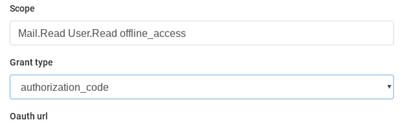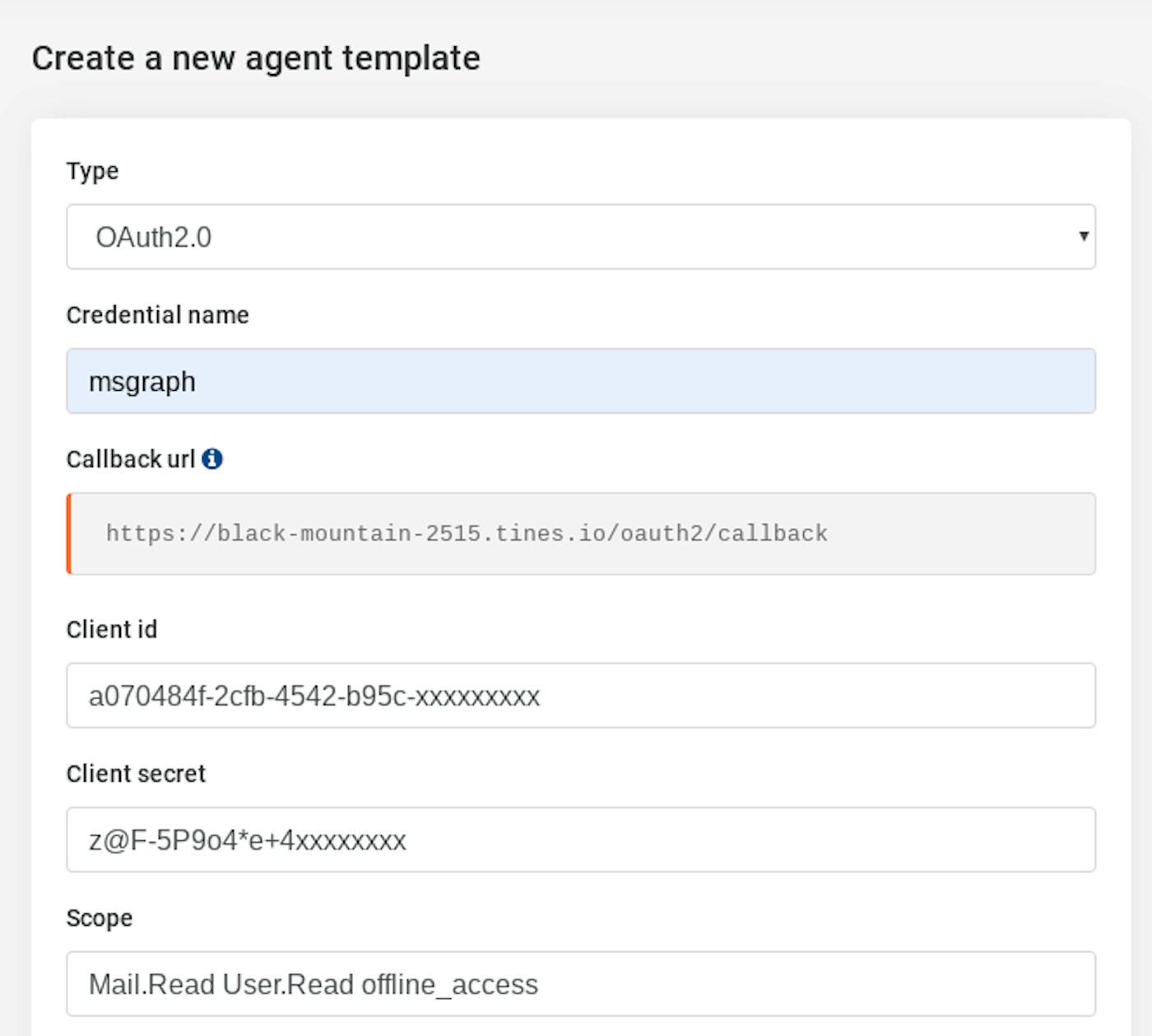 Under scope, we’ll enter a space-separated list of the permissions we used when registering the Graph application in Step 2. That is: Mail.read and User.read. Additionally, we will include the offline_access scope. This scope will allow Tines to request fresh access tokens as necessary.