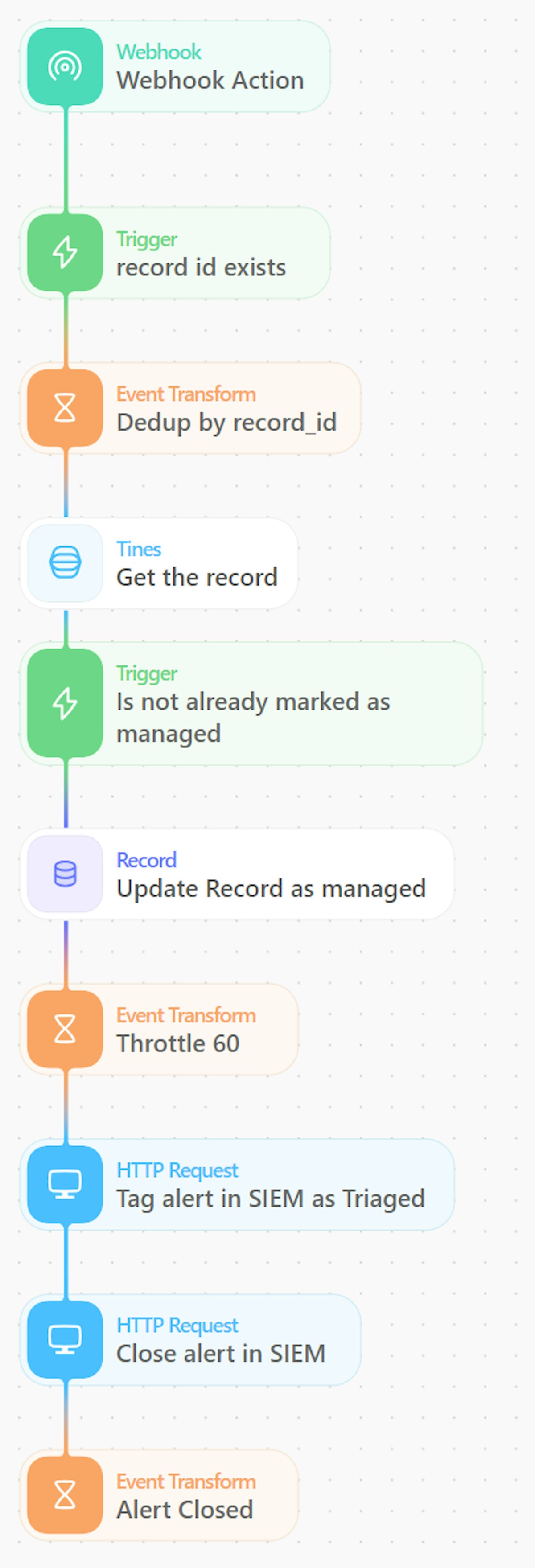In a guest blog post, Aaron Jewitt, Principal Detection Engineer at Elastic, walks us through a Tines workflow he built to improve the efficiency of his team's automated alert triage processes. He recently shared how his InfoSec team uses Tines to automate alert triage over on Elastic's blog, which makes a great companion piece to this post.