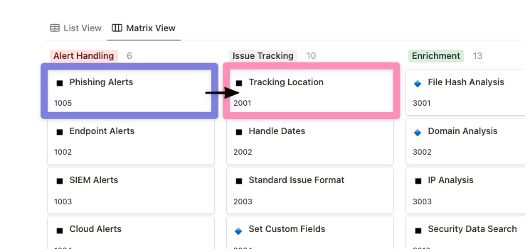 Once a suspicious message has been identified either through the user reporting or generated alert, more automation capabilities become available. A good piece of advice is to create a location for tracking the lifecycle of each alert as soon as possible. Utilizing the Tracking Location capability in the Issue Tracking section, we can identify where these alerts should be recorded, updated, and reported. Notice how the workflow has now moved between sections of the Automation Capability Matrix to extend the process.