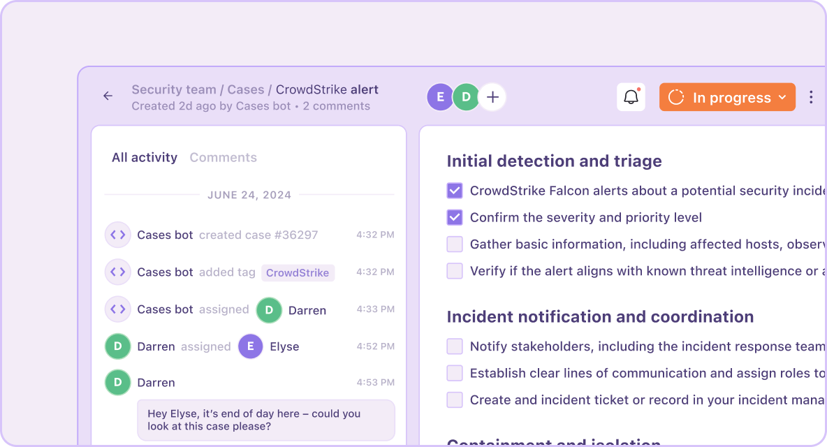 When you’re looking into a case, focusing on what matters most is crucial. That’s why we added the ability to toggle over the cases sidebars and filter the activities in a case timeline to view case information in a more concentrated manner.