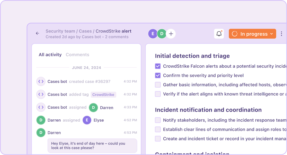 When you’re looking into a case, focusing on what matters most is crucial. That’s why we added the ability to toggle over the cases sidebars and filter the activities in a case timeline to view case information in a more concentrated manner.
