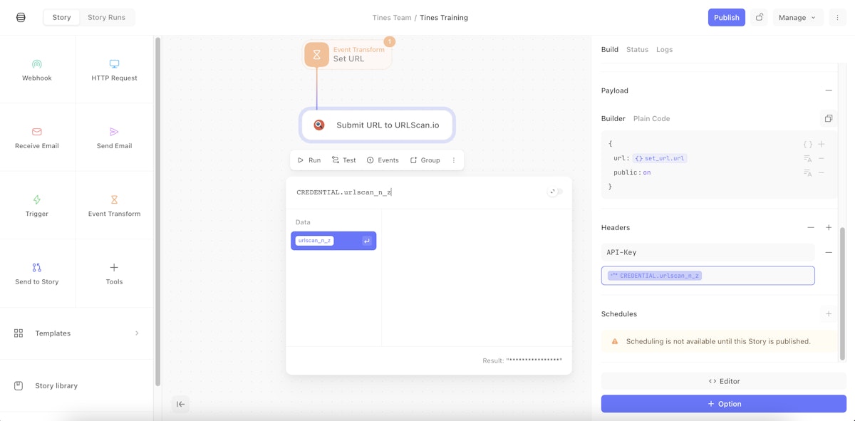 -H 'API-Key: <<CREDENTIAL.urlscan_io>>' \Simply copy the code here and paste it into your story.