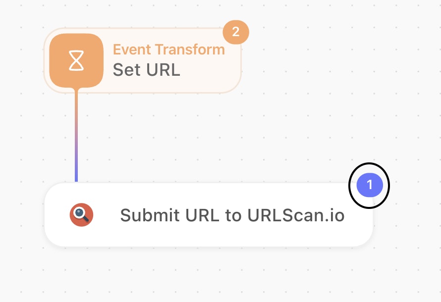 Click and drag “Submit URL to URLScan.io onto the story board.
