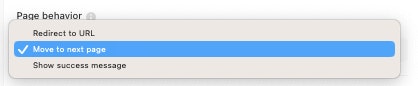 With the Page selected, on the right pane, you can set the action this Page will take On Submission. In the "Page behavior" field, click the drop-down, and change this to "Move to Next Page"