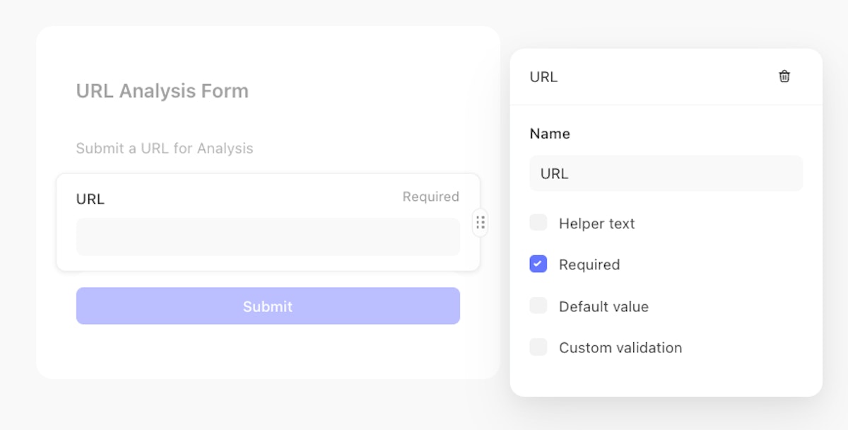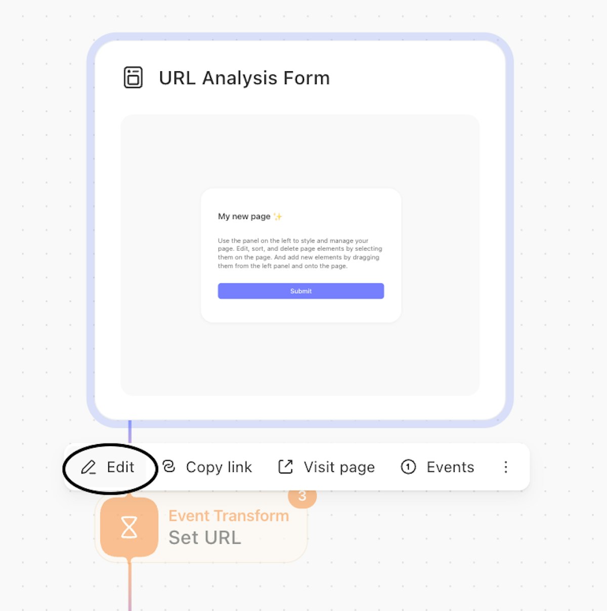 This is not the URL you were looking for! What happened? When you built your "Set URL" action, you set a static URL for the value. Now that you have a Page, you need to update that action so you can use a Pill which will reference the inputs from the Page submission, dynamically setting the URL to analyze every time the story is run.