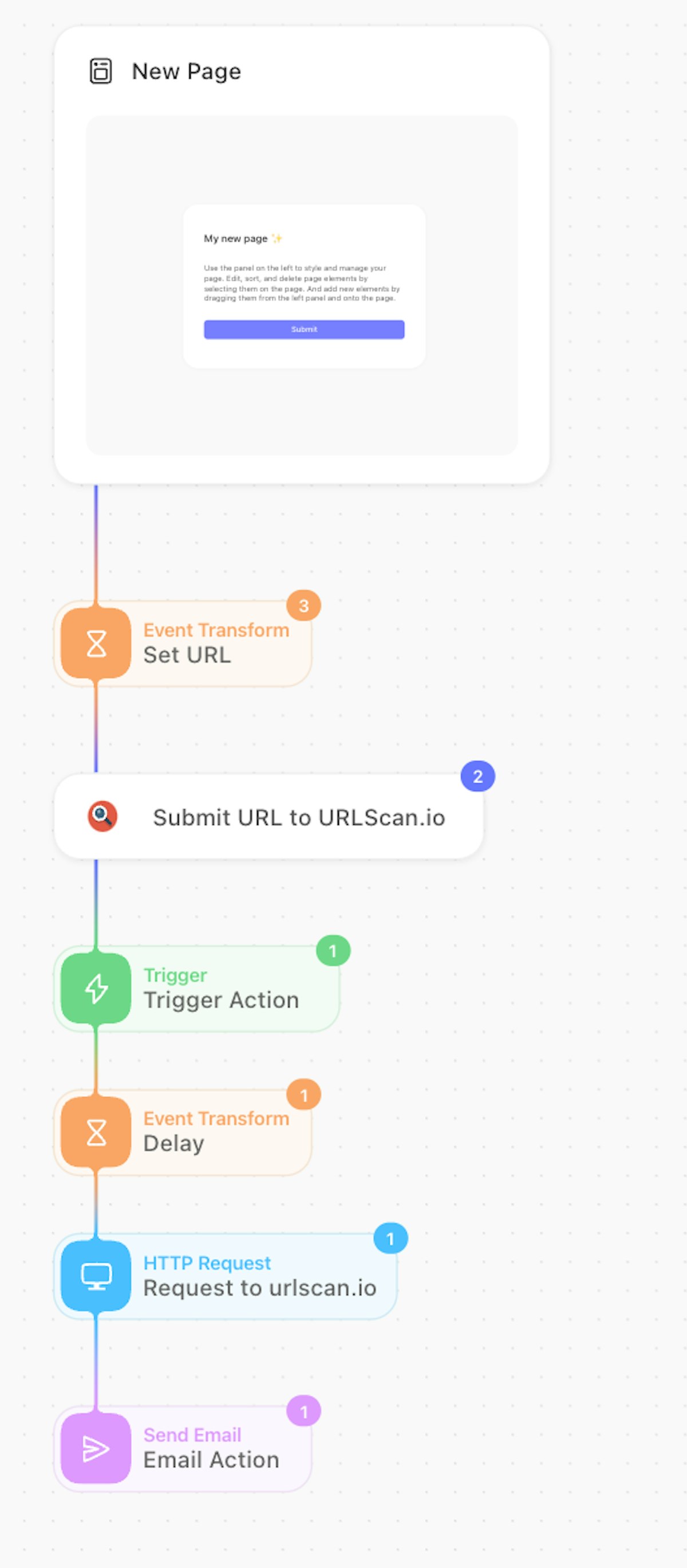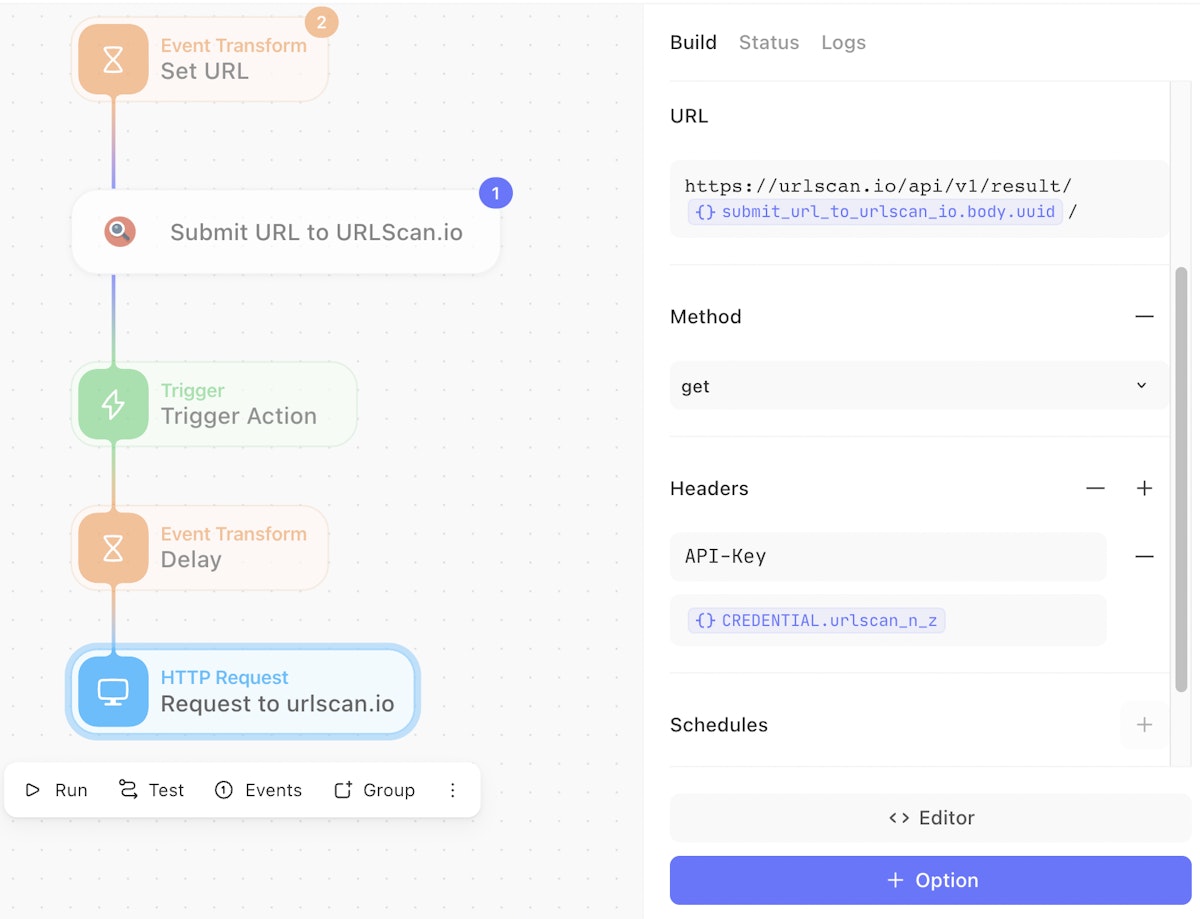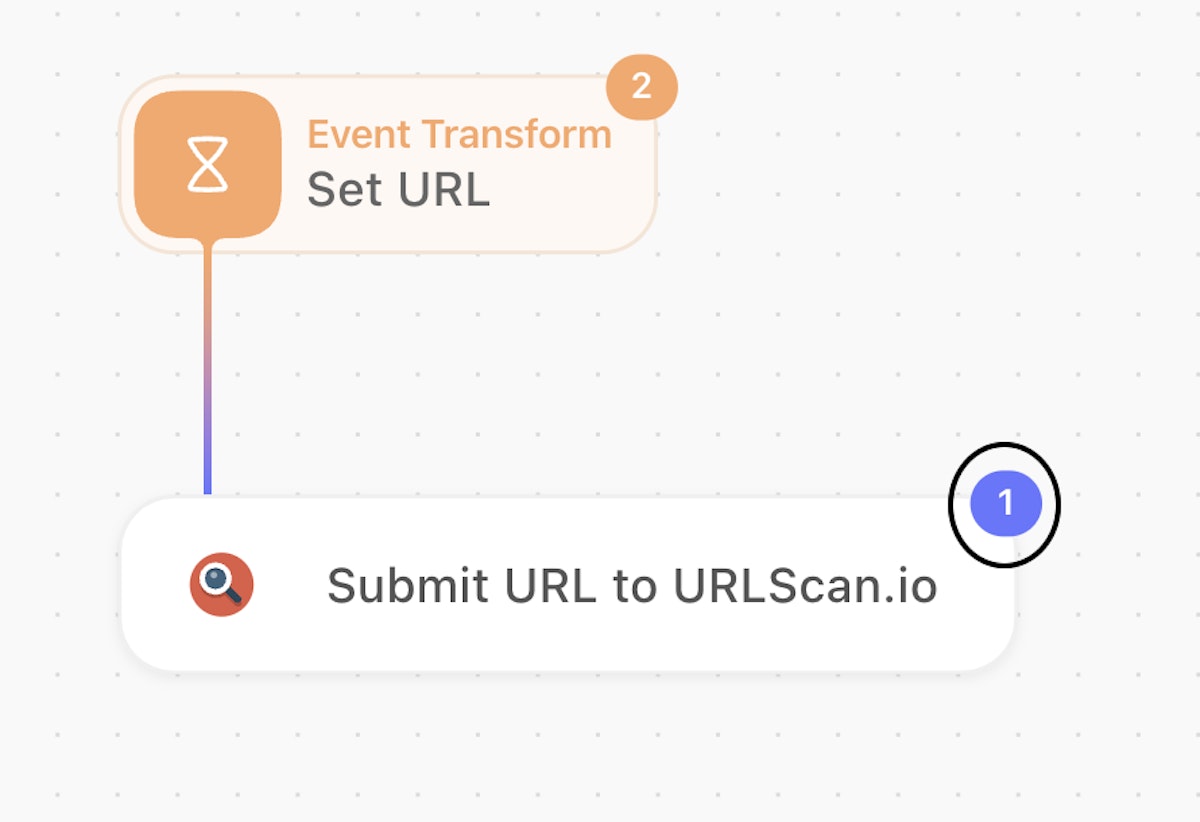 Click and drag “Submit URL to URLScan.io onto the story board.