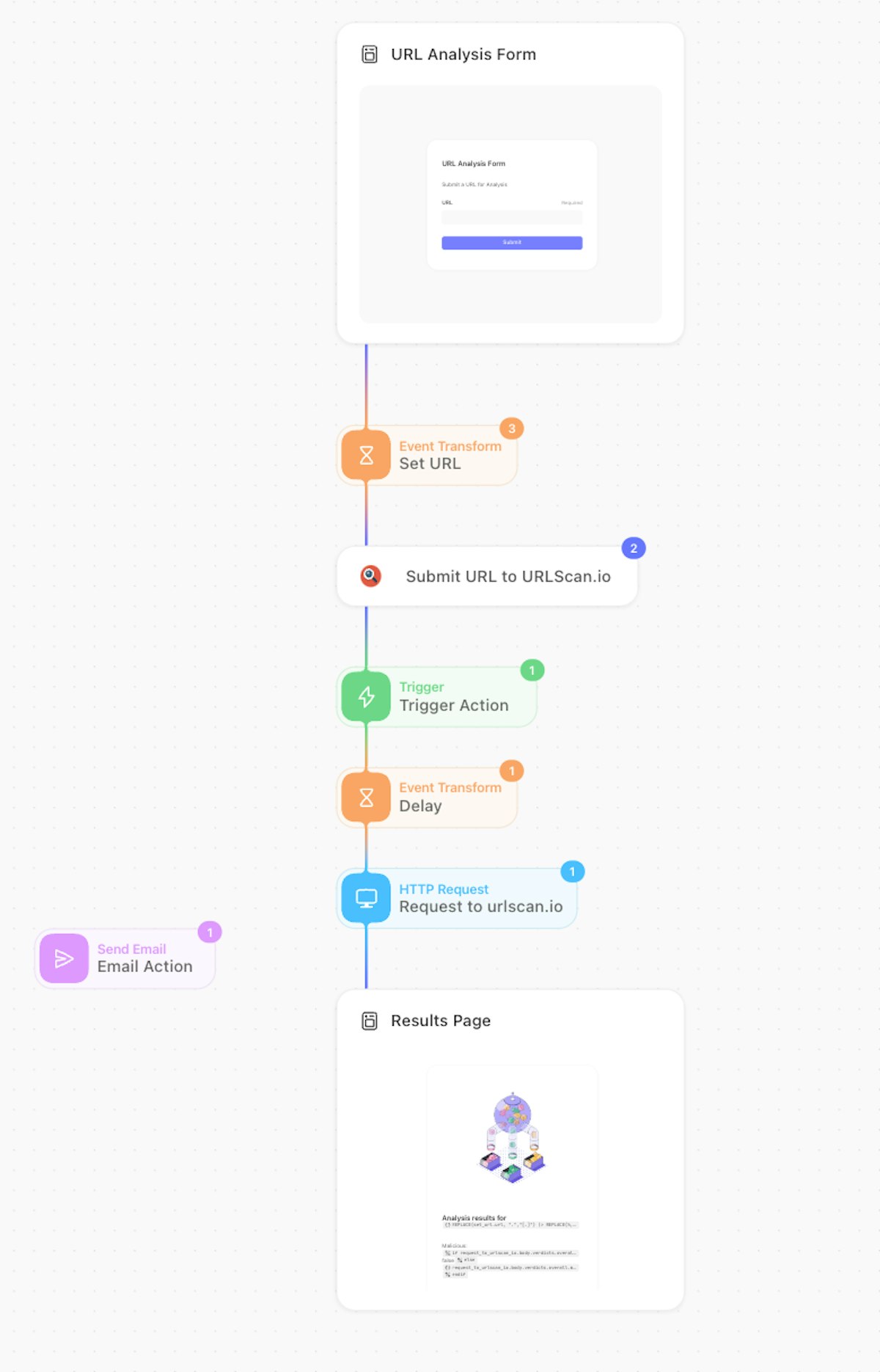 Today, you will be building a story that allows you to submit a URL to URLscan, wait for the scan to complete, and then retrieve the results. After retrieving the results, you will format the results and send them via email.