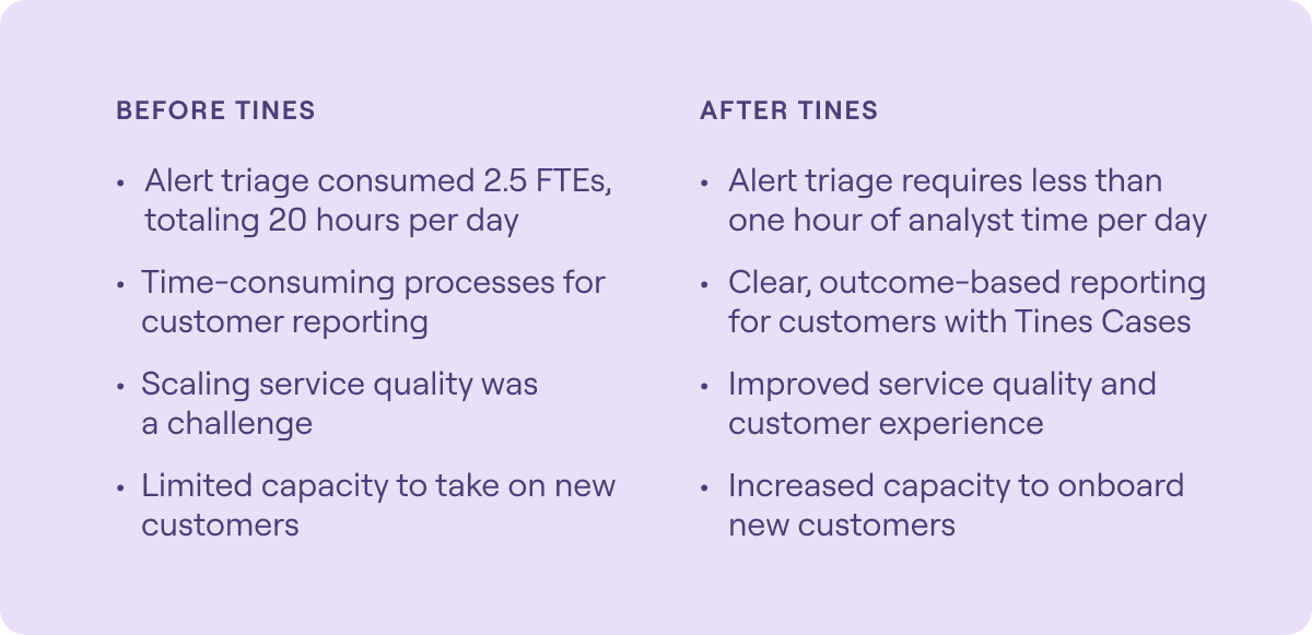 This blend of cost and operational efficiency made Tines foundational to the company’s service model.