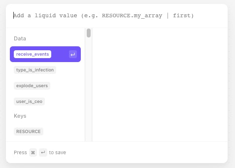}To insert information from an incoming event into an action's options block, first insert a value pill: