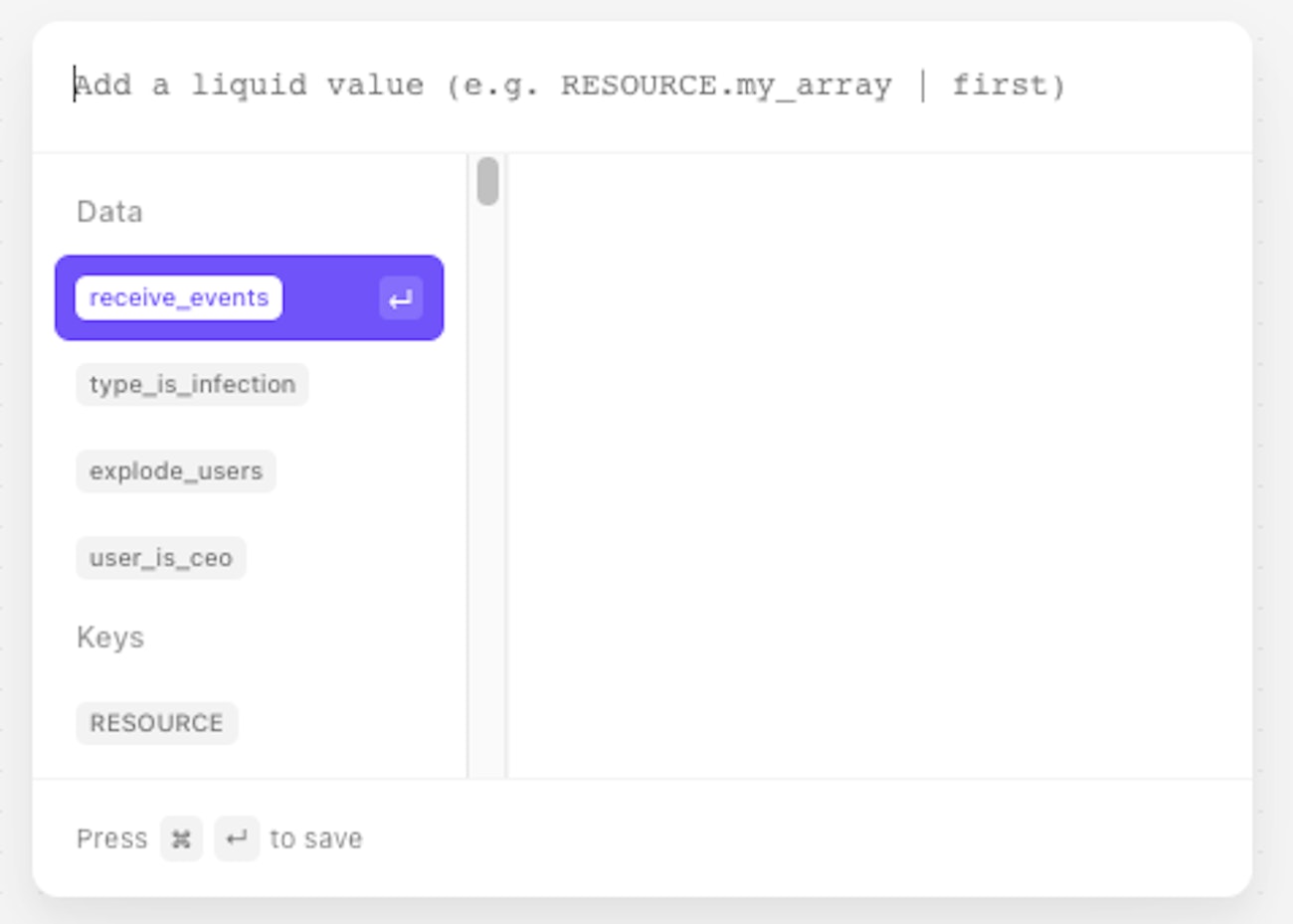 }To insert information from an incoming event into an action's options block, first insert a value pill: