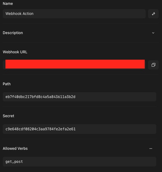The Webhook Action will emit Events it receives through Webhooks (HTTP callbacks).