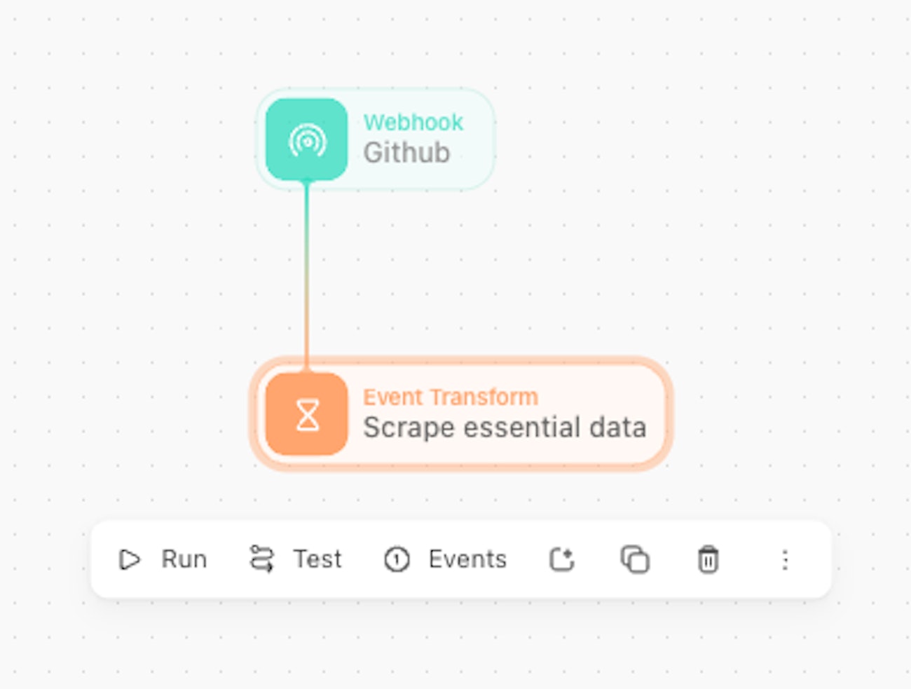 Let's say you had a webhook action that was set up to listen for any github events from your organisation's repo, and you wanted to use an automatic Event Transform Action to extract the relevant info.