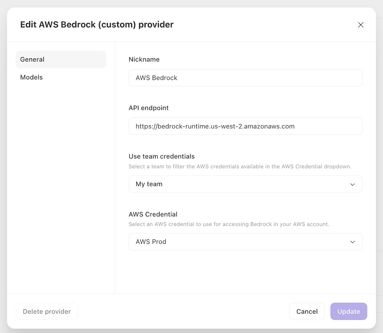 When configuring your connection to AWS Bedrock, you’ll need to specify the correct Amazon Bedrock runtime API endpoint for your AWS region.