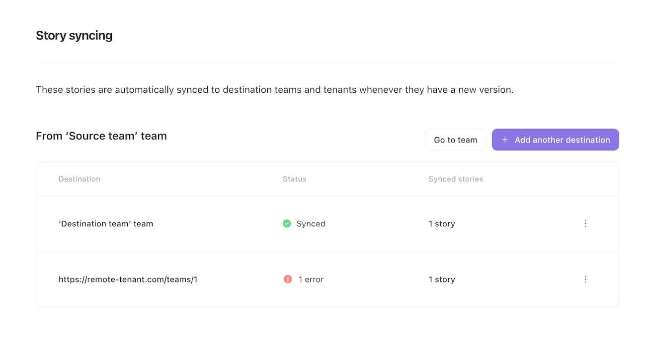 In certain circumstances, "detaching" a story from sync may be required. For example, if you no longer want the story to be centrally managed, but instead customized and locally managed in the destination team.