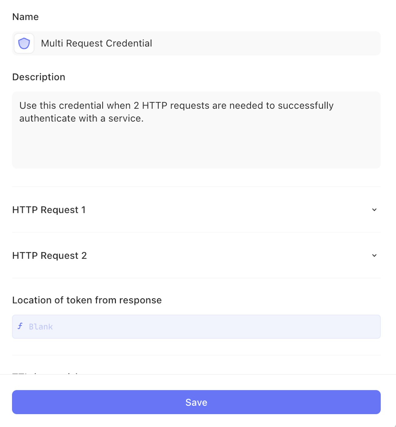 The Multi Request credential allows you to make multiple HTTP requests to fetch an access token or API key, every time the credential is used. For instance, you could use this to fetch runtime credentials from a service like Vault or CyberArk Secrets Hub.