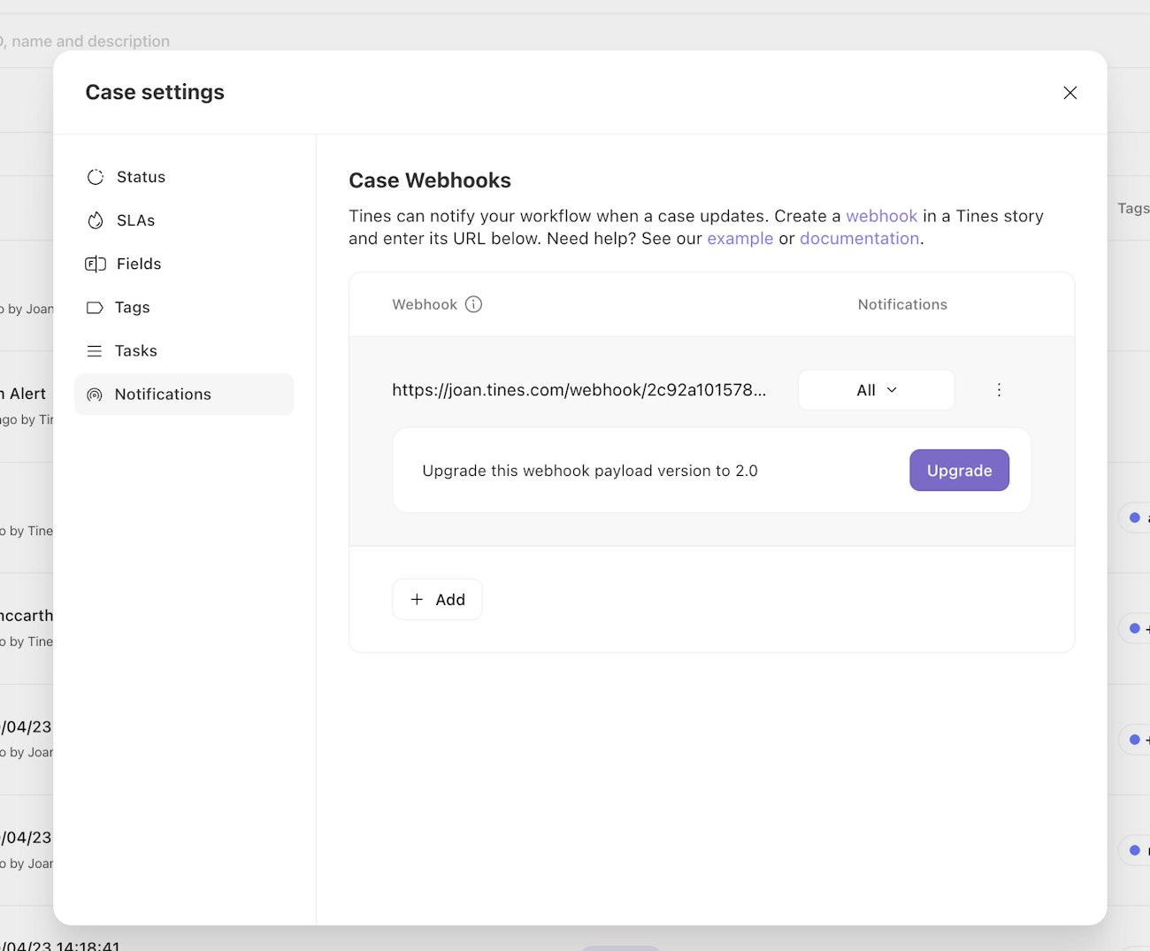 When Tines updated our cases API to v2.0, the resulting case notification payload also changed.