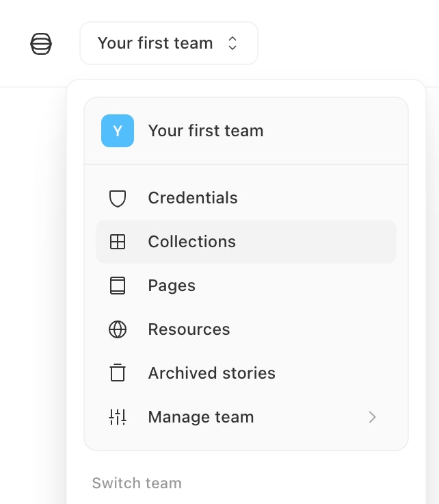 The collection editor can be found from the story diagram, your team's home, or the collection itself. It is a separate page that allows you to change the emoji, rename a collection, add, reorder, and remove pages in a collection.