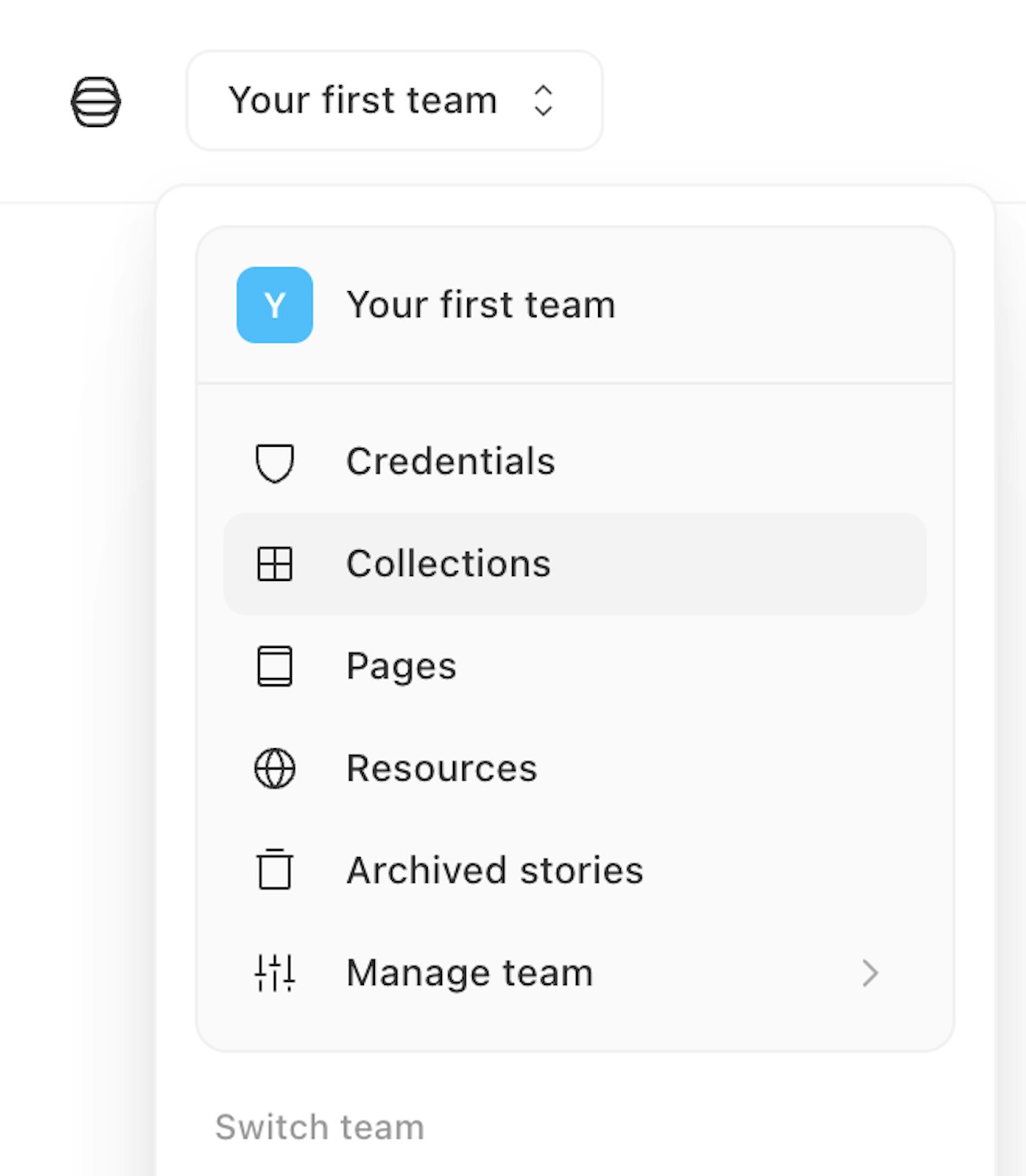 The collection editor can be found from the story diagram, your team's home, or the collection itself. It is a separate page that allows you to change the emoji, rename a collection, add, reorder, and remove pages in a collection.