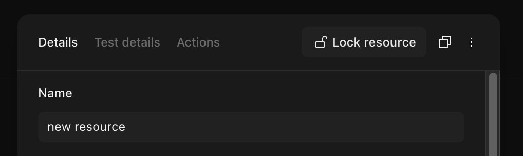 A resource can be locked by clicking the Lock resource button on the top-right of the resource modal.