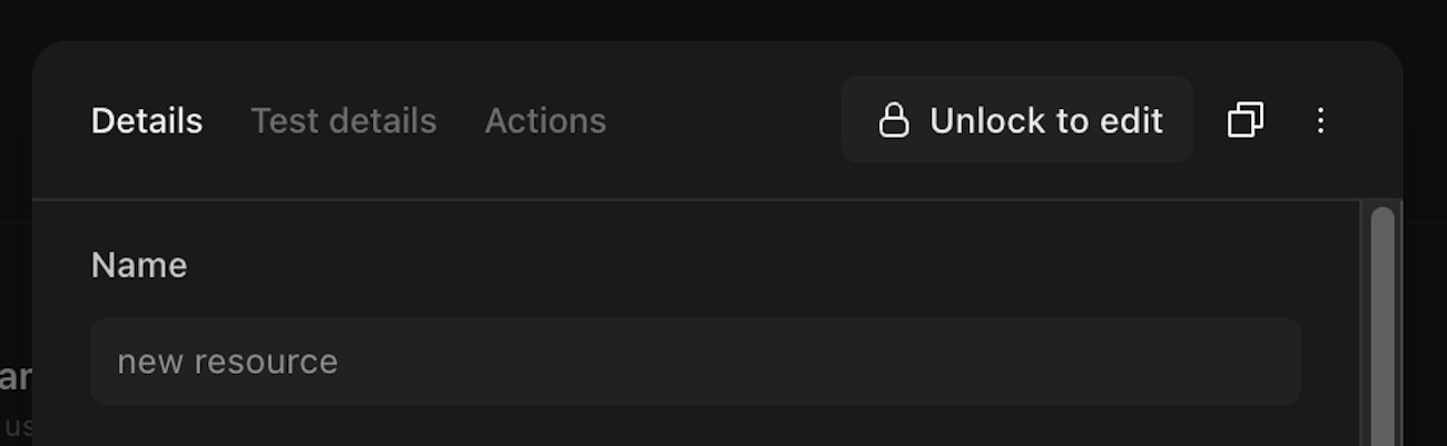 A resource can be locked by clicking the Lock resource button on the top-right of the resource modal.