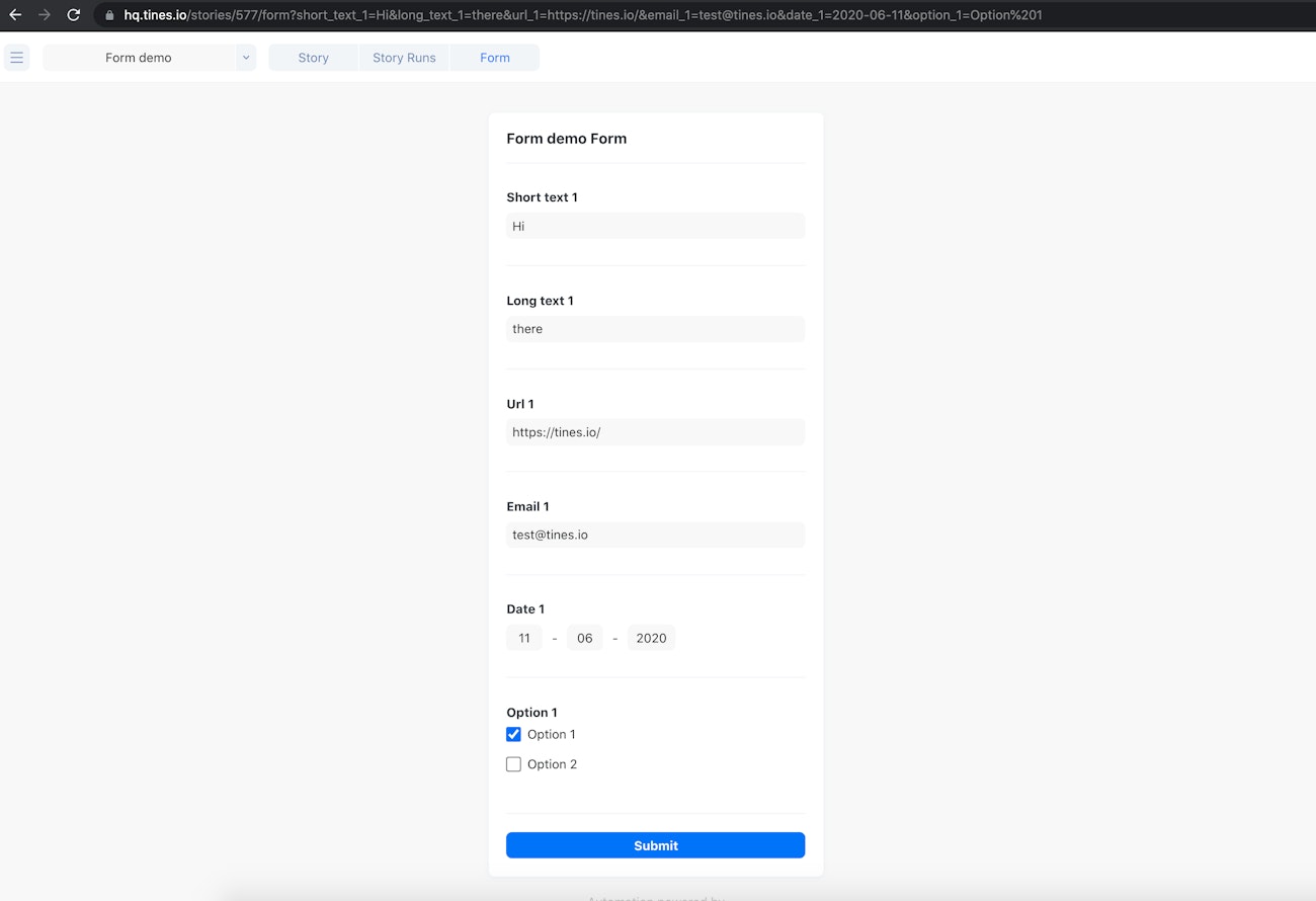 You can now pass query parameters to the form in the URL bar. Support for multiple options in the options field will be added in following releases.