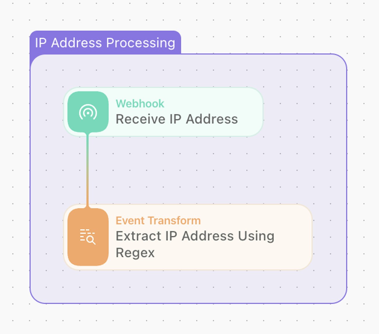 A section visually associates a set of actions. Sections improve understanding and clarity by visually organising actions, making complex workflows easier to follow and interpret.