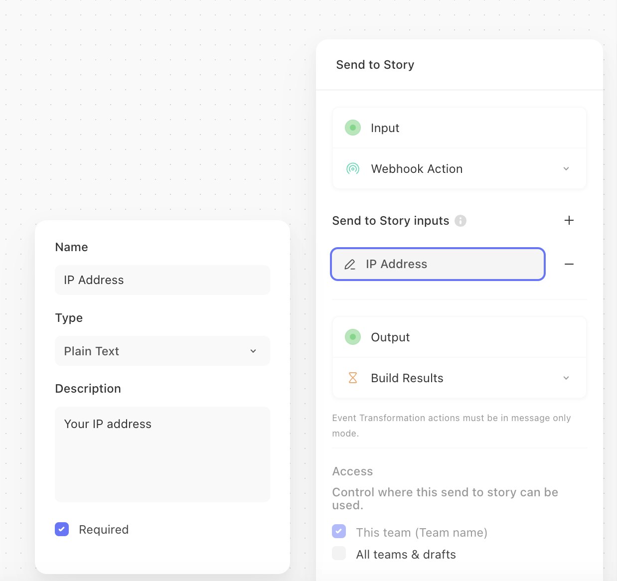 Inputs are the defined values your sub-story needs to run. These will be auto-populated in the send to story action when your sub-story is specified. These inputs can also be updated on the webhook action itself.