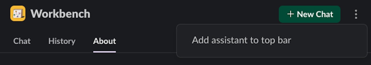 Tip: Pin Workbench to the top bar of Slack for easy access.