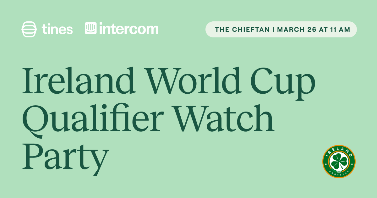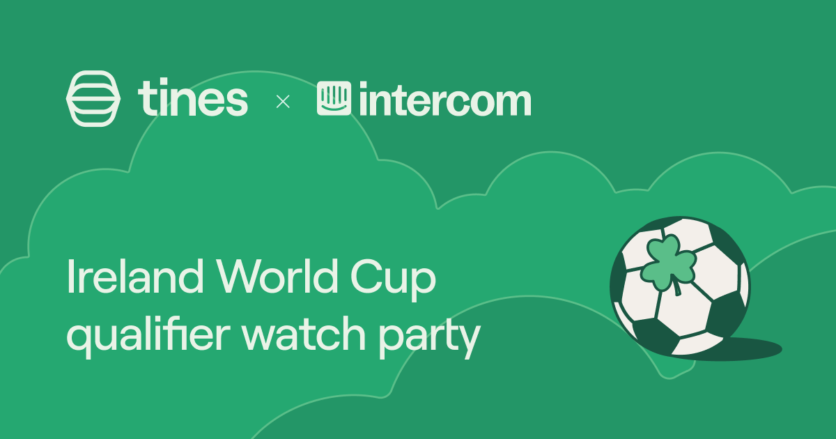 After a busy week at RSA, join Tines and Intercom for a well-earned break and cheer on Ireland in their World Cup Qualifier match. As a Dublin-founded company, we take pride in our Irish roots and there is no better way to celebrate than by cheering on the boys in green in this epic battle.