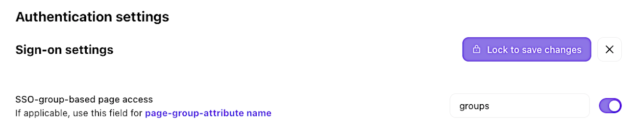 Once enabled, enter the group attribute name in the SSO-group-based page access field. This name should match the attribute in your identity provider (IdP) that contains group information. You'll find this attribute in your IdP's SAML assertion. Check your IdP documentation to confirm the exact attribute name.