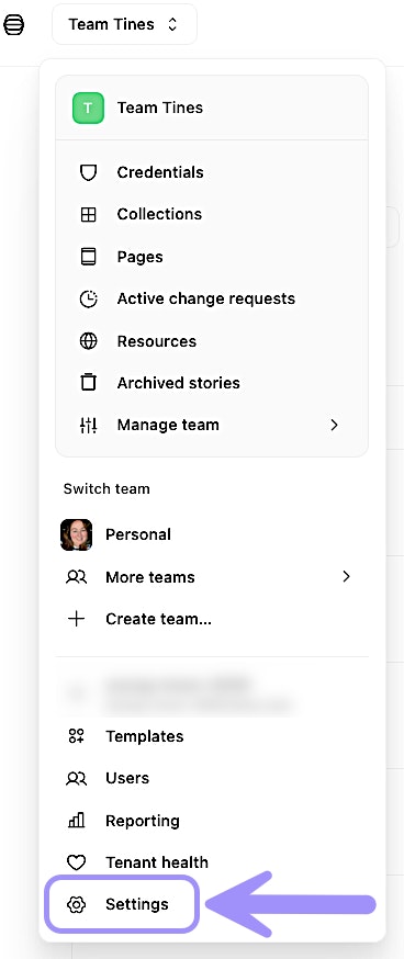 Within your tenant, navigate to the team menu (top-left corner of the user interface (UI)).