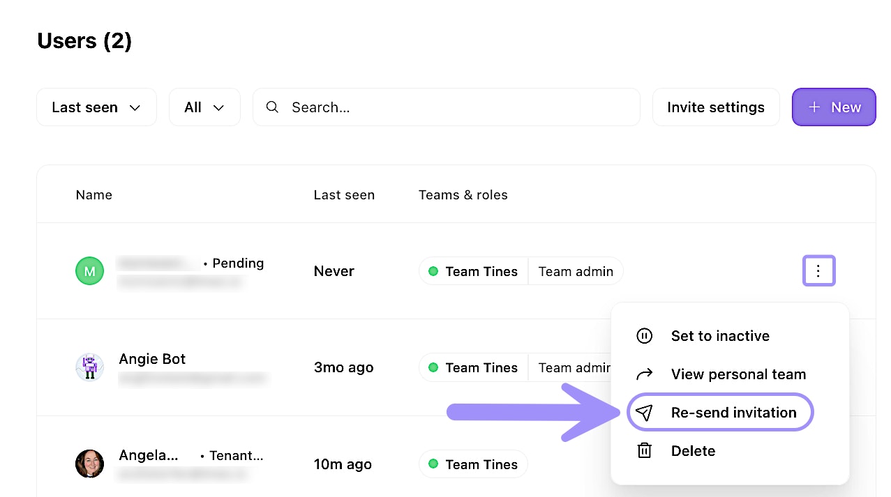 Sometimes an invitation email gets lost, expires, or a user accidentally deletes it. In these cases, you can resend the invitation without creating a new user entry.