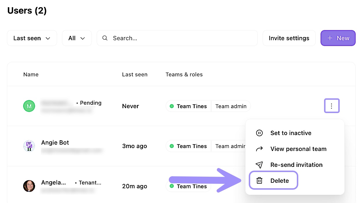 There are times when you need to remove a user from your tenant entirely. This might happen when someone leaves your organization, changes roles, or no longer needs access to Tines.