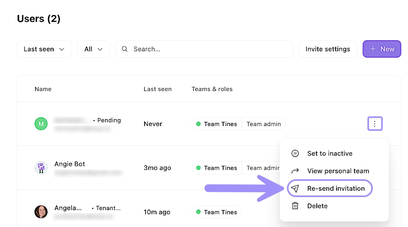 Sometimes an invitation email gets lost, expires, or a user accidentally deletes it. In these cases, you can resend the invitation without creating a new user entry.