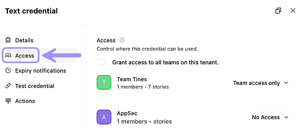 One of your key responsibilities is controlling who can access which credentials. By default, credentials are only accessible to the team that created them. However, you can configure access control to share credentials across teams.