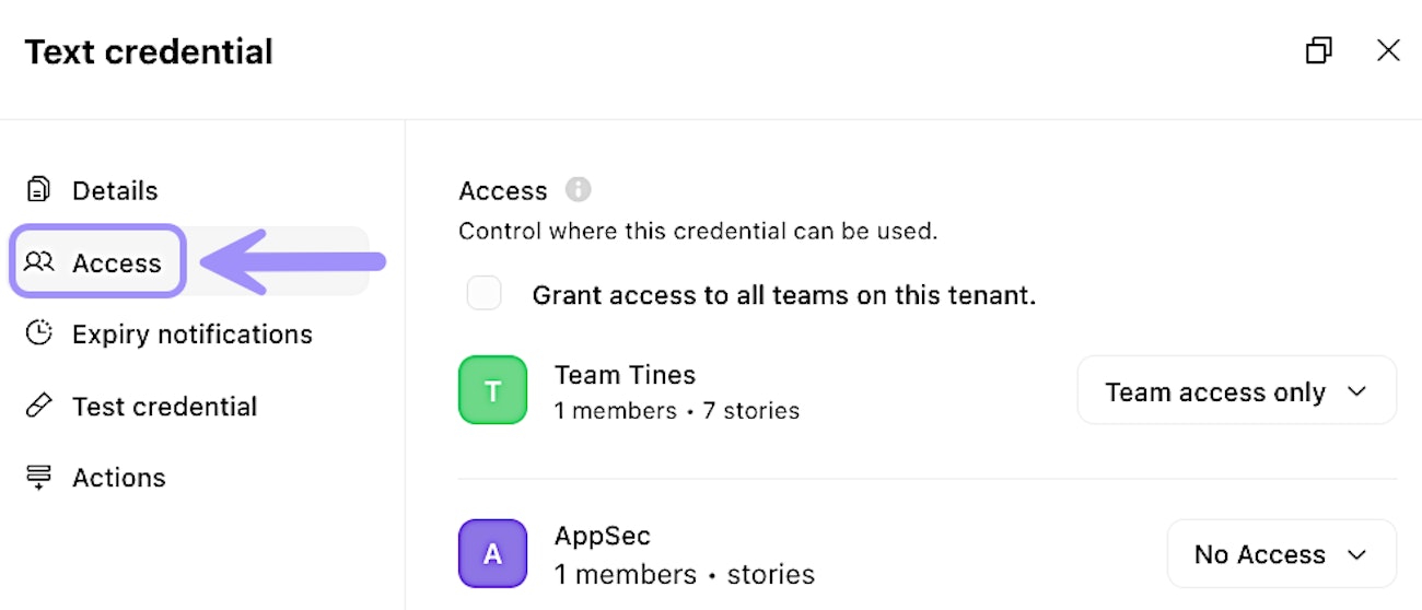 One of your key responsibilities is controlling who can access which credentials. By default, credentials are only accessible to the team that created them. However, you can configure access control to share credentials across teams.