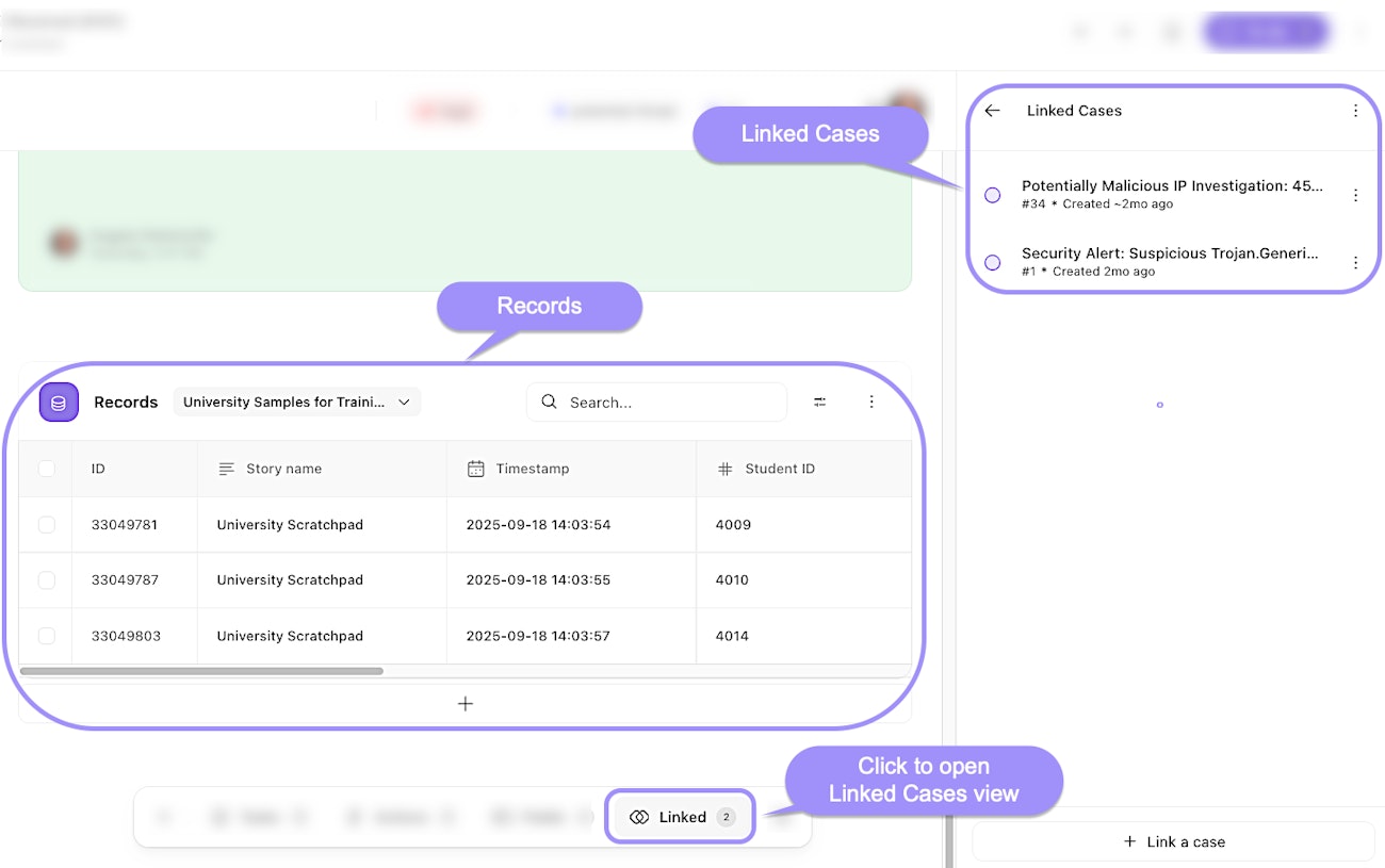 Linked cases: Associations with other cases, enabling visibility into related incidents or tasks.