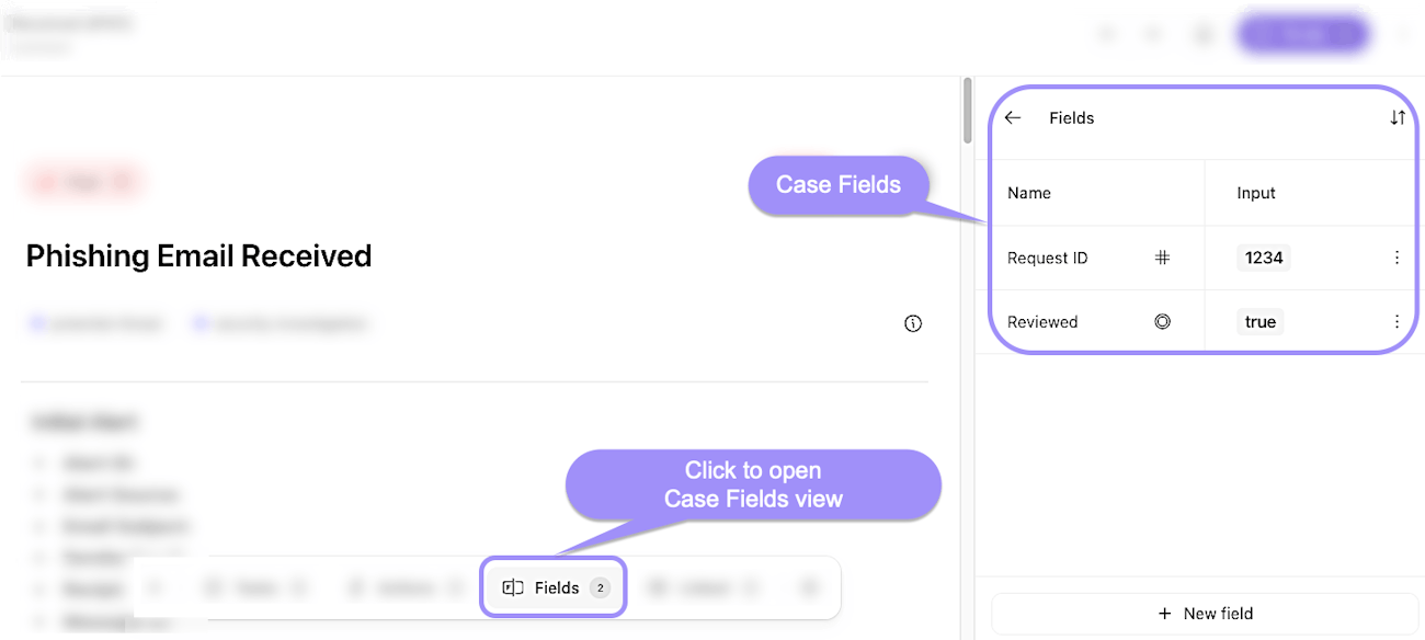 Case fields: Custom variables defined at the team level, such as text, number, timestamp, or boolean types. These fields can be referenced within the case description or comments by typing "@" followed by the field name.