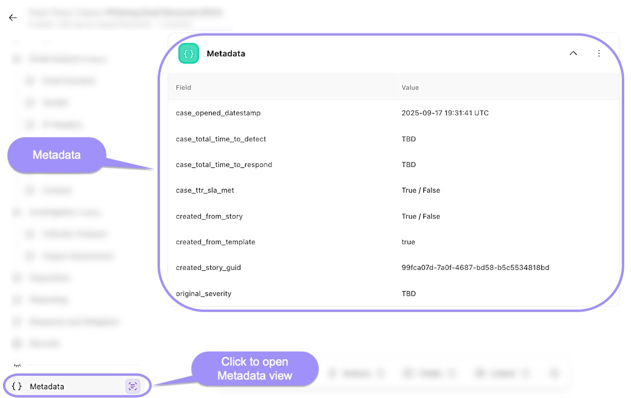 Metadata: Key-value pairs that you can create, providing additional structured information about the case.